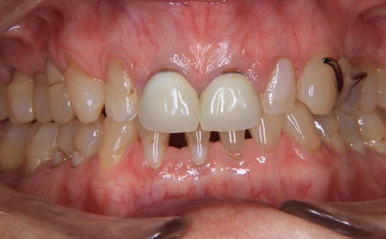 This patient had a prosthesis that snapped in to his implants for years and with time it started to become loose and rub his gums. We were able to make him a lot more comfortable and confident by making a new prosthesis that screwed in to the implants.